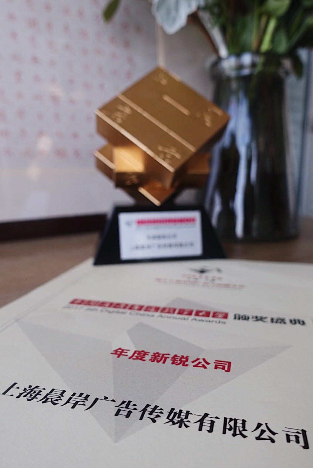 在第五屆中國(guó)廣告年(nián)度數(shù)字大(dà)獎頒獎盛典上(shàng),晨岸傳媒獲得(de)由《中國(guó)廣告》雜(zá)志(zhì)頒發的(de)“2017年(nián✔)度新銳公司”大(dà)獎